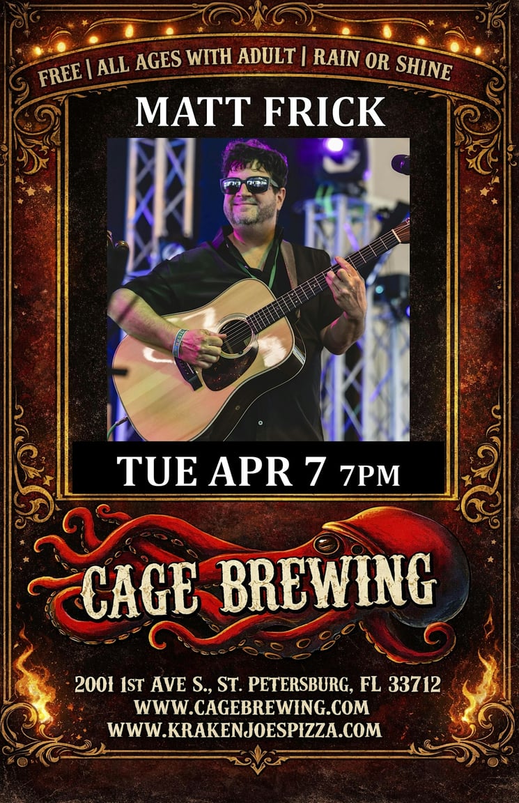 Join us at Cage Brewing located in Grand Central District for some Beer, Music & Pizza! See below our events calendar where we have live music with full bands 5 nights a week. Cage Brewing is home to one of the top live music venues in St. Pete!